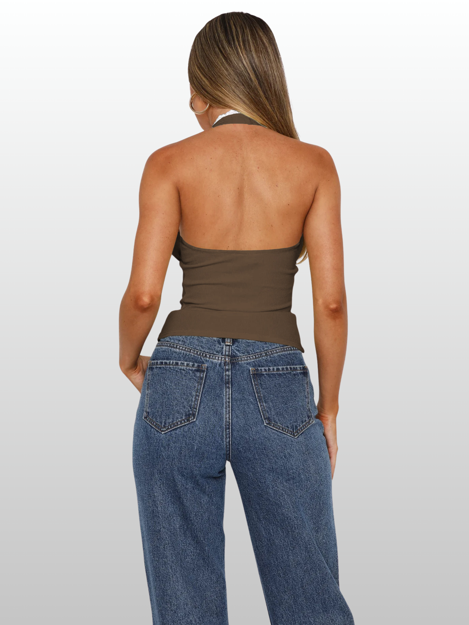 Zieh dieses Top an und lebe deine Main-Character-Energie. Ein bisschen Nostalgie, ganz viel Jetzt. Dieses Haltertop ist für Frauen gemacht, die sich nicht zwischen feminin und mutig entscheiden wollen – es ist beides.