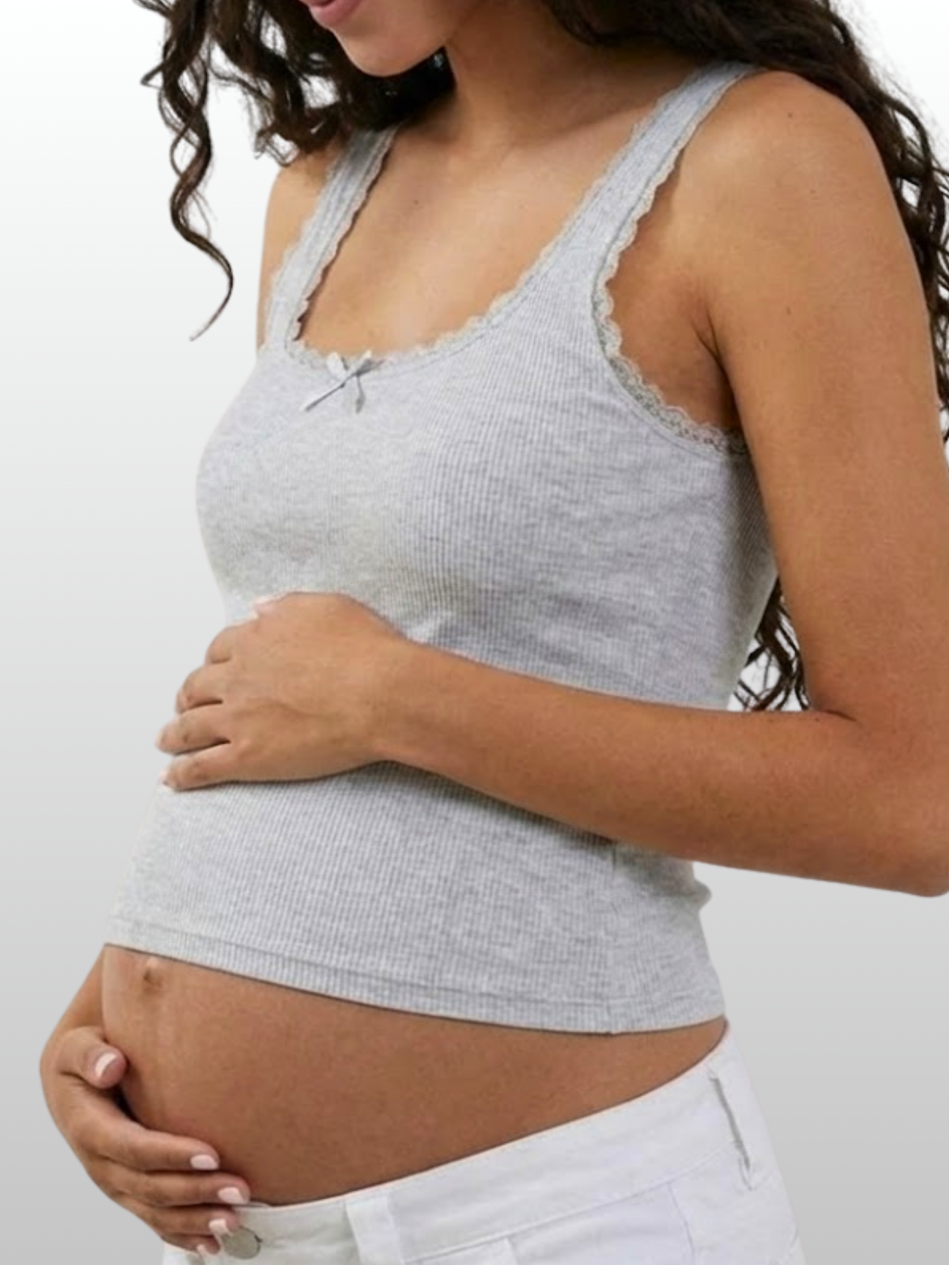 mumshape™ Pointelle Babydoll Cami – Weiches Ripp-Top mit Spitzenbesatz