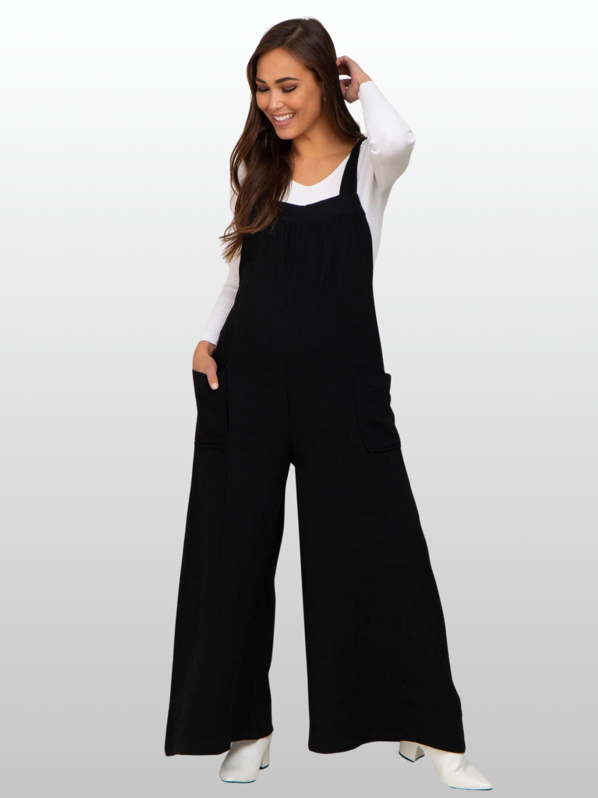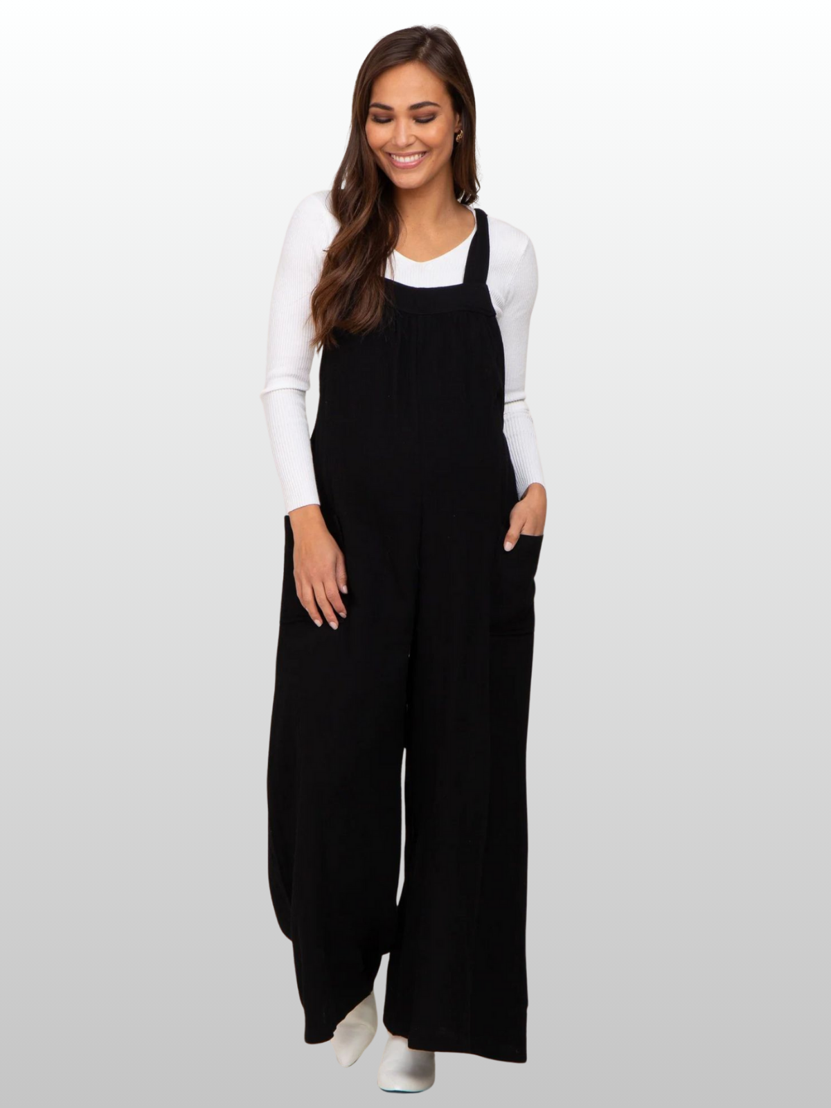 Ideal für: Schwangere Frauen, die einen unkomplizierten, eleganten Overall für Alltag, Freizeit oder besondere Anlässe suchen – luftig, bequem und stilvoll.