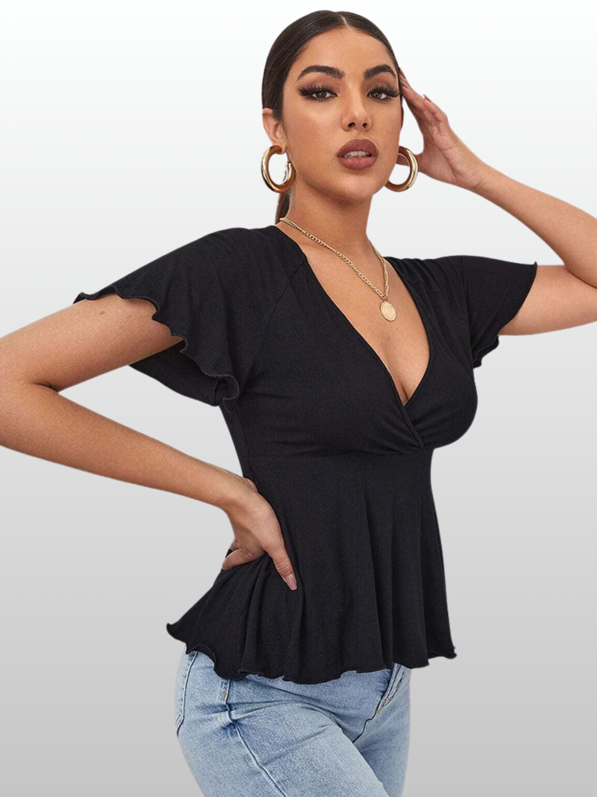 Umstandstop gerippt V-Ausschnitt | Stillshirt Wickeloptik kurzarm | Umstandsmode Oberteil mit Schößchen | Schwangerschafts T-Shirt Rippstrick | Stillfreundliches Oberteil | Umstandsbluse kurzarm | Umstandstop Flügelärmel | Umstandsshirt für alle Trimester | Schwangerschaftsbluse Rippoptik | Stillmode Oberteil V-Ausschnitt | Umstandstop elegant mit Schößchen