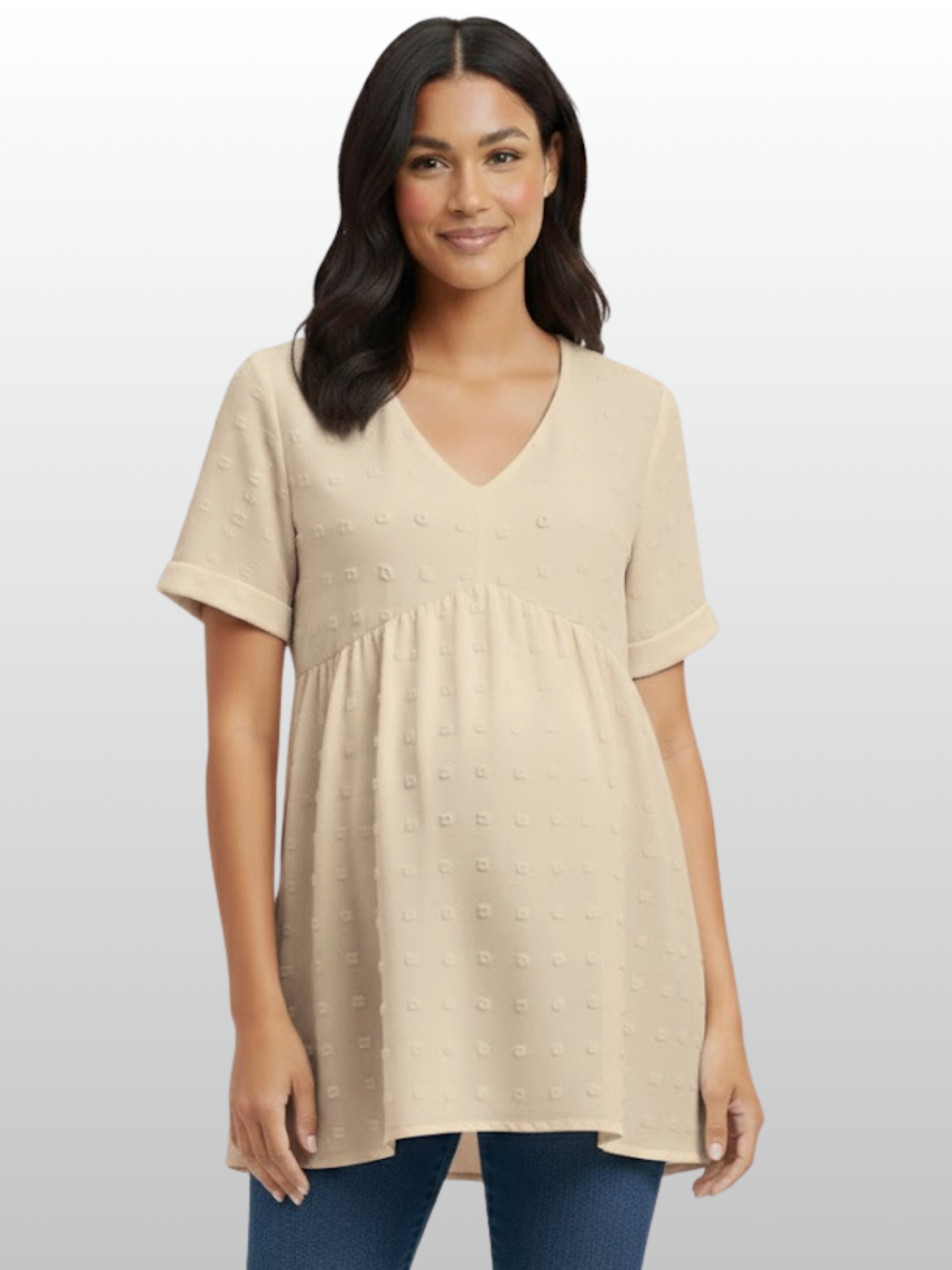 - Hübscher Strukturstoff: Weiche Punkte verleihen einen femininen, charmanten Look – dezent, aber besonders