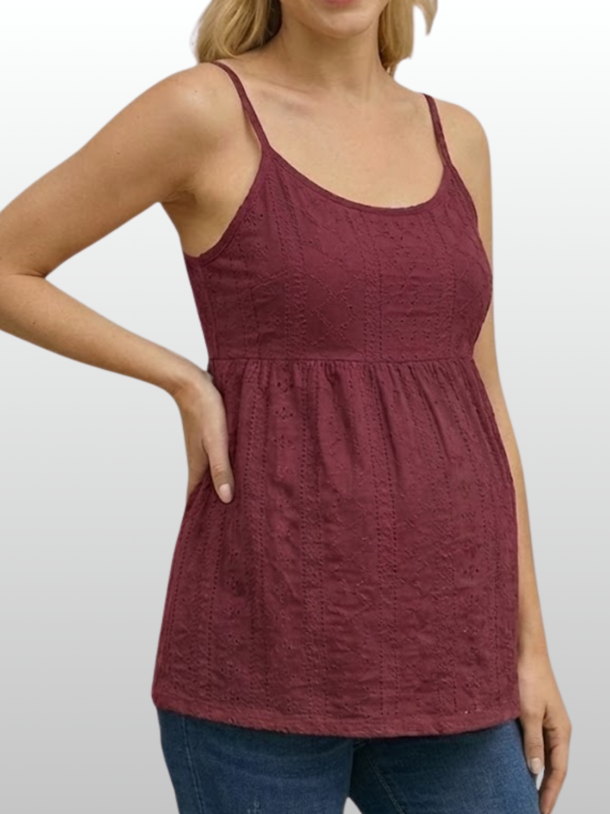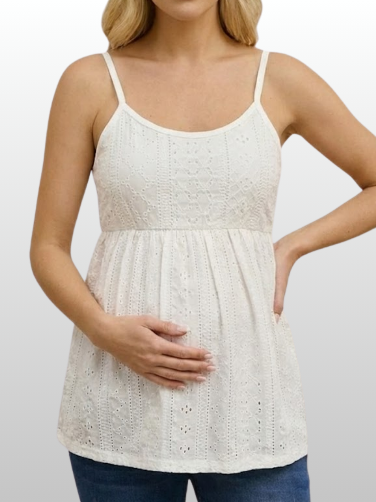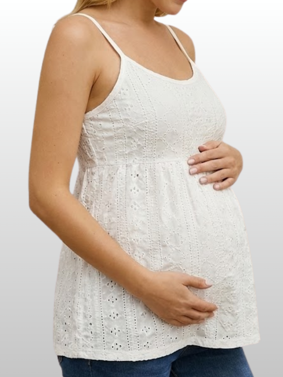 Sommer-Umstands-Camisole | Luftiges Schwangerschafts-Top | Eyelet-Still-Top | Stilltop Sommer | Frühschwangerschaft Oberteil | Pumpfreundliches Umstands-Trägertop | Ästhetisches Maternity-Lace-Camisole