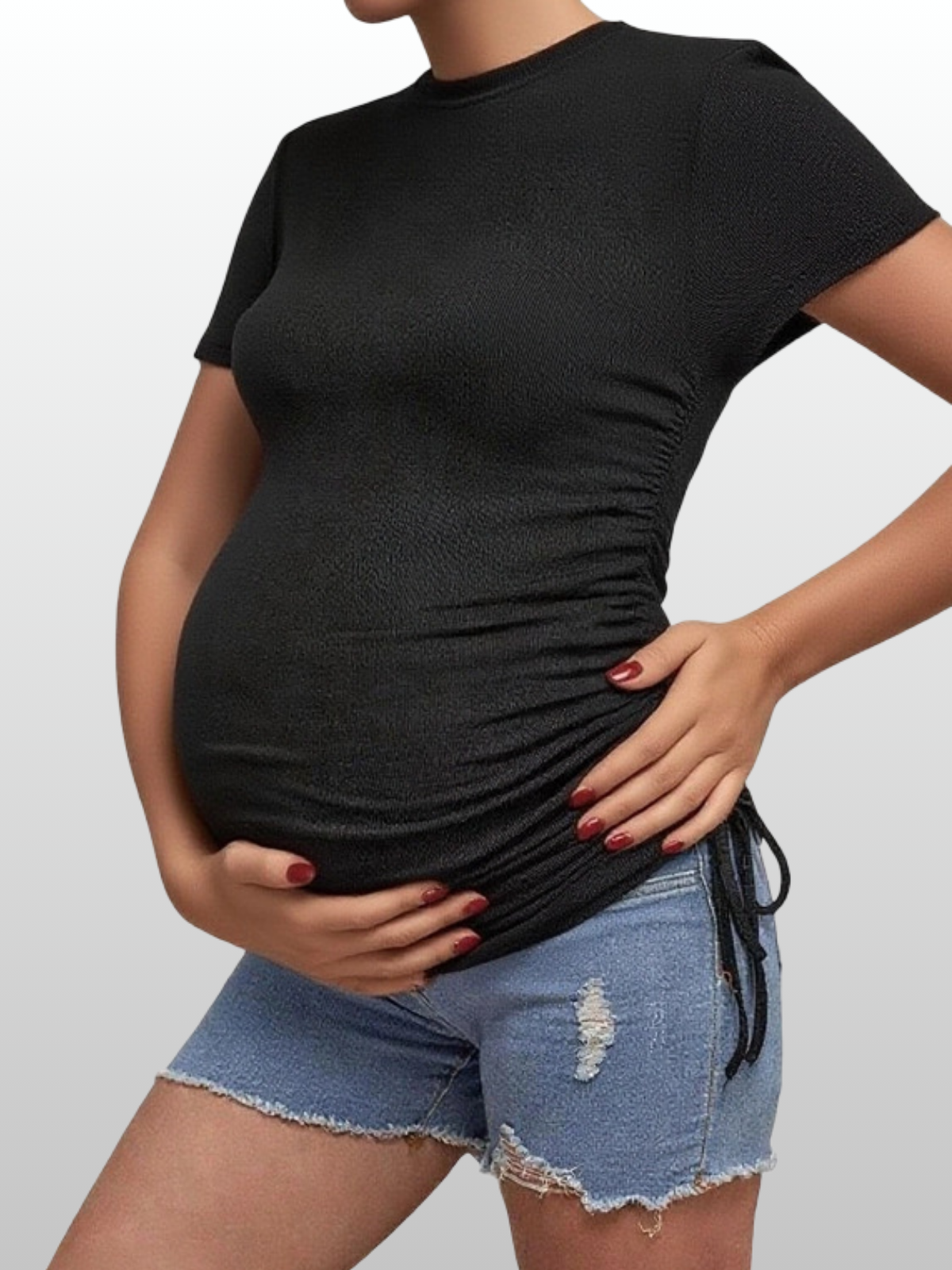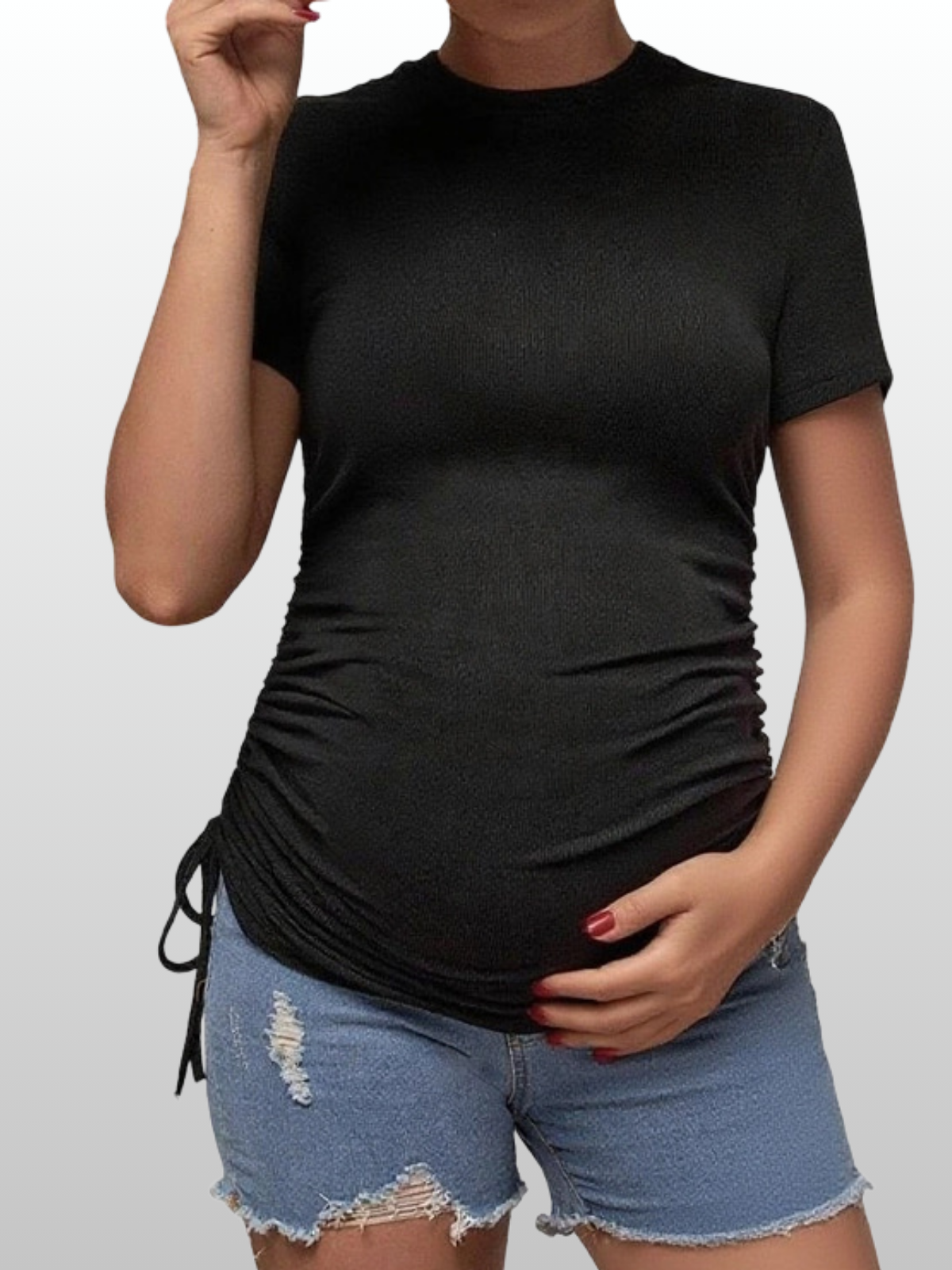 Umstands-T-Shirt mit verstellbarer Seitenraffung | Schwangerschafts-Tee für alle Trimester | Figurbetontes Umstandsshirt mit Kordelzügen | Maternity Top für wachsenden Babybauch | Atmungsaktives Umstandsshirt mit seitlicher Raffung | Slim-Fit Schwangerschaftsshirt für Alltag & Freizeit | Dehnbares Umstandsoberteil für frühe bis späte Schwangerschaft