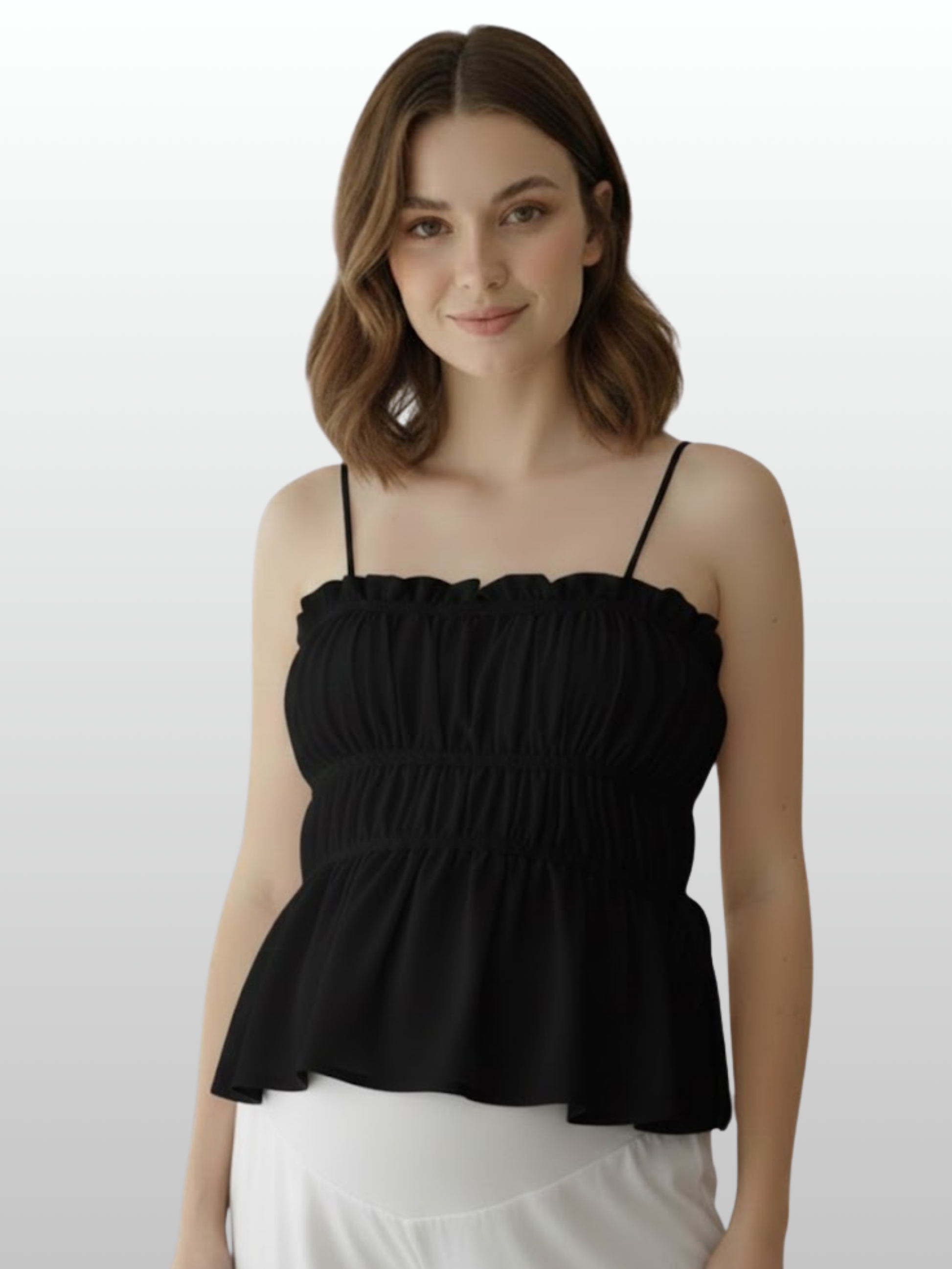 Umstands-Camisole mit Rüschen | Oberteil für das 1. Trimester | Peplum-Umstandsbluse | Leichtes Umstands-Top mit Spaghettiträgern | Schwangerschaftsoberteil Frühschwangerschaft | Feminines Umstands-Trägertop | Sommer-Umstandstop | Rüschen-Camisole für Schwangere