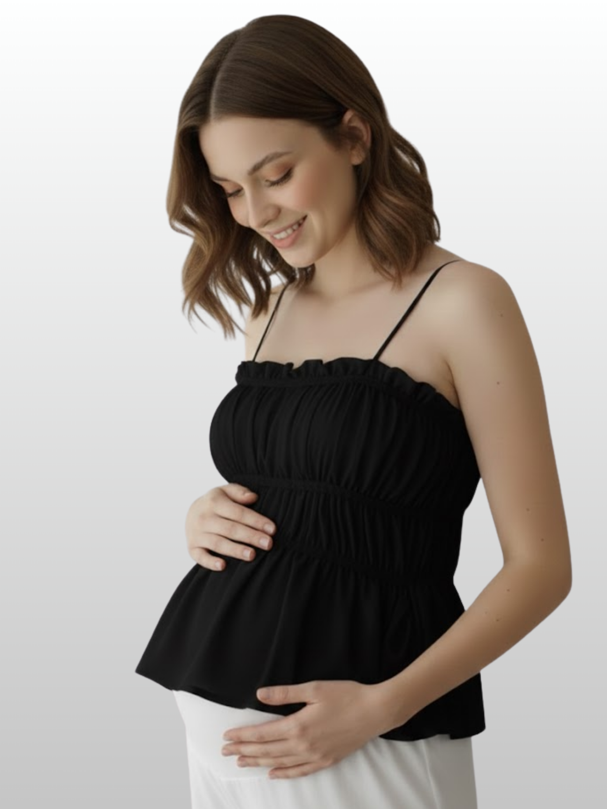 Das mumshape™ Ästhetische Rüschen-Umstands-Camisole wurde für die sanften, schönen Anfänge der Frühschwangerschaft entwickelt. Die feminine Rüschen-Empire-Silhouette und der leichte, luftige Stoff sorgen für mühelose Bequemlichkeit auf empfindlicher Haut im ersten Trimester. Für selbstbewusste Early-Bump-Moms designt, fällt es weich und verleiht dir einen modernen, minimalistischen und liebevollen Look.